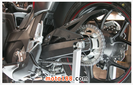 一如過去,INTEGRA 750同樣有雙離合器版,簡單來說,HONDA的雙離合器因為預先「入定波」,固此轉檔速度非常敏捷及穩定,比人手轉檔更精準。亦因為這個原因,加上高昂的開發成本,固此Motogp賽例列明禁用雙離合器。可是你有張良計,我有過墻梯,HONDA在2011年率先為 Motogp戰車配置了稱為「無縫齒合Seamless Clutch」波箱,雖然結構上只采用傳統的單離合器,但功能與雙離合器有異曲同功之妙。