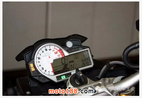 高配版S1000R搭載定速巡航,電熱把手等裝備。同時儀表內容豐富,可讀性非常好。