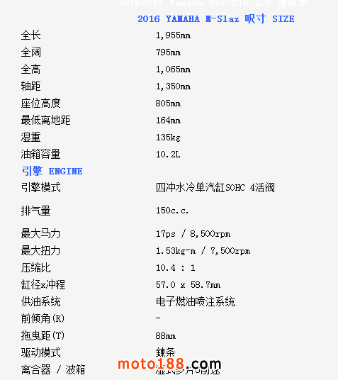 核心提示: 泰國YAMAHA在12月1日正式發佈名為M-Slaz新款NK車,簡單來說車輛是 R15的NK版,因為水冷單汽缸引擎、Deltabox合金車架及尾擔等