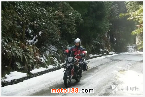 冬日里,結冰或被積雪覆蓋的路面非常危險,摩托車容易打滑失去控制。如果車手要在這樣的路況下行駛,可適當對輪胎放氣、降低輪胎氣壓,從而增加輪胎的抓地面積,減少打滑等危險狀況發生。