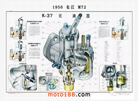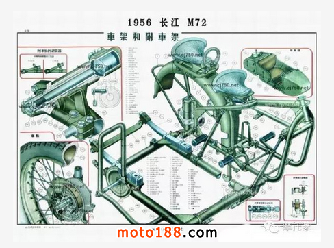 在洪都機械廠仿制的時候,由于參照實物是已經去掉加熱系統的烏拉爾M72,所以根本無人知道原始的加熱設計。還有一項仿制中消逝的設計是風門和動力分配擋,R71可以把30%的動力通過共軸直接輸出到挎斗上,并以手動拉桿的方式調節,可M72則把風門和動力分配擋挪到了腳的位置,并且不能將30%動力輸出到挎斗上。從寶馬R71到烏拉爾M72,再到洪都仿制版,也并不只是簡化,蘇聯人仿制M72很大程度上是為了大量裝備部隊,而中國的仿制版除了軍用,還承載著觀禮等多種設計任務。寶馬R71的挎斗沒有任何減震系統,顛簸的路面乘坐起來很累,洪都仿制版拋棄了烏拉爾M72的挎斗結構,創造了一套中國化的挎斗避震支架。