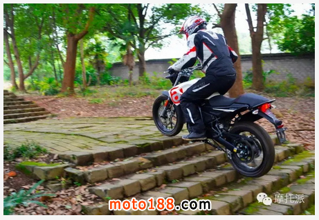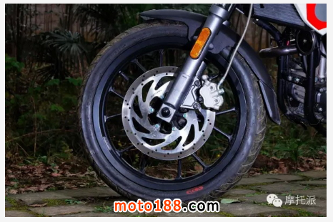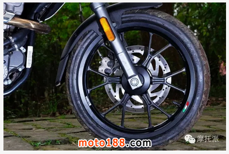 輪胎:前100/80-17,后130/70-17,正新輪胎,運(yùn)動型輪輞。不過,我倒覺得輻條輪配大齒紋胎更帶感,也更好玩。