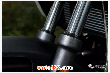 前懸掛:37mm正立叉,壓縮及回彈阻尼適中,下部的磨砂套筒配合磨砂擋泥板,視覺效果明顯。