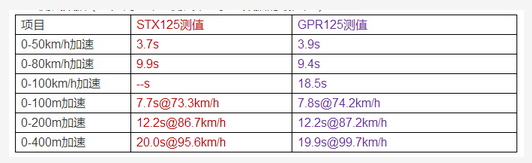 由于STX比GPR輕18kg,所以STX起步階段的發(fā)力更早,這也證實了小編之前測試的主觀感受。由于道路條件受限,并沒有0-100km/h的數(shù)據(jù),估計應(yīng)該在19秒之上,不過110+的極速肯定是沒有問題的。