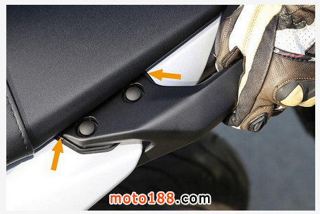 YAMAHA 針對(duì)MT-03 的街車(chē)屬性,并且想要進(jìn)一步強(qiáng)化「輕松的」騎乘感,特別在「車(chē)把」、「后扶手」兩處增加了減震設(shè)計(jì),使用的原理就是在固定點(diǎn)上采取彈性的固定材質(zhì),在車(chē)把基座的固定點(diǎn),使用橡膠襯套作為實(shí)際連接的接口,這是在車(chē)輛設(shè)計(jì)中很常見(jiàn)的減震方式。在車(chē)把的部分,若不仔細(xì)觀察其實(shí)和一般的把手無(wú)異,不過(guò)車(chē)把對(duì)操控感來(lái)說(shuō)也至關(guān)重要,所以在襯套的材質(zhì)上選擇了較硬質(zhì)的橡膠,在減震之余不會(huì)吃掉了前輪的回饋感。
