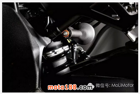 為了更適合街道使用,從進氣、排氣到供油系統都重新設計,并使用新的曲軸連桿,由于沒有高轉速的需求,雖然官方沒有數據顯示,但相信會與北美市場的R1S 同樣,將鈦合金連桿改為鋼制品降低引擎極限轉速也能降低成本。并使用新的排氣閥門設計的排氣管,從米蘭實車照片看來頭段也換回鋼制品。另外為了引擎外露的街車設計,水冷系統與管路也都進行修改,同時也達到減輕重量的效果。