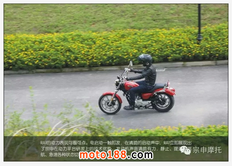 RA1的動(dòng)力表現(xiàn)可圈可點(diǎn)。電啟動(dòng)一觸即發(fā),在清脆的啟動(dòng)聲中,RA1展現(xiàn)出了宗申在動(dòng)力平臺(tái)研發(fā)上的技術(shù)優(yōu)勢,發(fā)動(dòng)機(jī)聲音清脆有力,靜止、提速、巡航、急速各種狀態(tài)切換平滑流暢。
