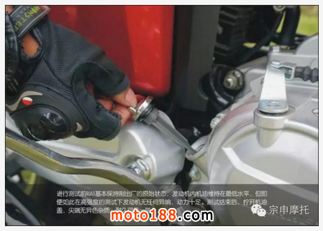 進(jìn)行測試前RA1基本保持剛出廠的原始狀態(tài),發(fā)動(dòng)機(jī)內(nèi)機(jī)油維持在最低水平,但即便如此在高強(qiáng)度的測試下發(fā)動(dòng)機(jī)無任何異響,動(dòng)力十足。測試結(jié)束后,擰開機(jī)油蓋,尖端無異色雜質(zhì),耐久可見一斑。