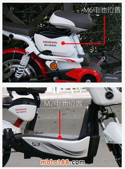 M6的電池組安裝在車座下方,而M7系列將電池轉移到了踏板位置。這也是兩款車最大的外觀差異。