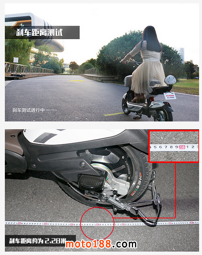 在我們現場進行的剎車距離測試中,M7的表現非常優越,剎車距離僅為2.28米,與市場上大多數剎車距離在三米以上的電動車比起來,有很大的性能優勢。
