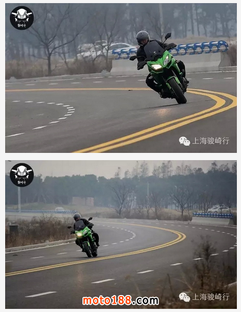 將近100公里的山路測試,出現了陰雨和霧氣,路面濕滑。除了驚喜Versys1000優異的彎道表現外,KTRC與ABS也給騎者帶來強大的安全感。將動力輸出設定為LOW,并將循跡系統設為3,用于對付濕滑路面。動力輸出柔順,整個行車過程中僅出現過一次輕微的后輪滑動。而Versys1000太肯入彎,以至于我要提醒你,無需采取特別強烈的重心移動和身體配合,謹防入彎過度。只需雙腿輕夾油箱,輕輕推把,眼望出彎方向即可獲得順滑流暢的彎道體驗。一旦出彎,油門一轉便有輕快凌厲之感。Versys1000,柔順但絕不柔弱。