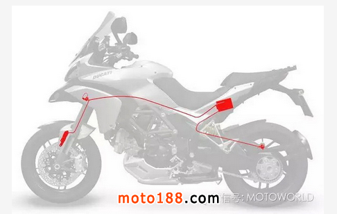 在旅行或都市兩種騎行環(huán)境下,聯(lián)動剎車系統(tǒng)能提供更加平穩(wěn)的車體動態(tài),然而對于運動風(fēng)格的激烈操控下,聯(lián)動剎車對于騎行上反而產(chǎn)生阻礙,不利車手通過前后 剎車的分配,控制車輛重心。因此Mulintstrada 1200 Enudro 采用電子式聯(lián)動剎車系統(tǒng),能根據(jù)所選擇的騎行模式,提供相對應(yīng)的剎車模式。