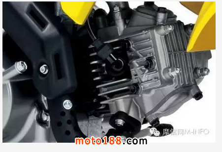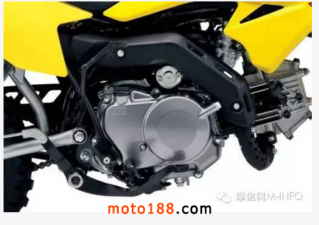 發動機:DR-Z50搭載49mL排量的單缸風冷四沖程發動機,四沖程特有的中低轉速大扭矩特性,加上大口徑化油器,有效增強了該車的爬坡能力。