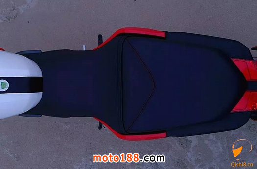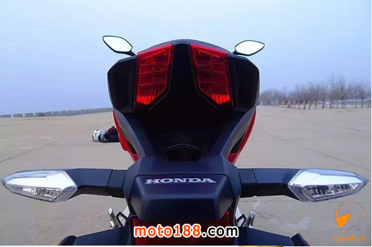全數(shù)字顯示的集成儀表也是此車的一大亮點(diǎn)是從CB500F上直接“移植”過(guò)來(lái)的,這等頗高的配置甚至在進(jìn)口大貿(mào)的CB300F上都沒(méi)有配置(可想本田已經(jīng)在看重國(guó)內(nèi)市場(chǎng))顯示醒目、直觀、沒(méi)有多余的顯示,唯一遺憾的就是沒(méi)有配備檔位顯示,這可能對(duì)新手來(lái)說(shuō)上手稍微有些吃力了。 細(xì)節(jié)部分,在儀表的兩側(cè)本田也很細(xì)心的采用了仿碳纖維材質(zhì)的外殼,細(xì)節(jié)上很讓人滿意! 采用分離式車把的街車著實(shí)不多而CBF190R算一個(gè),騎士可以通過(guò)調(diào)節(jié)車把兩端的螺栓來(lái)調(diào)節(jié)適合自己的車把高度和方向。正中心的Honda的logo恰到好處的點(diǎn)綴,配合車把比較細(xì)膩的做工,給騎乘者們帶來(lái)非常不錯(cuò)的視覺(jué)感官體驗(yàn)。 全LED的概念在190上得到了很好的體現(xiàn)就連車把的按鈕指示燈也不例外,它也是現(xiàn)目前唯一的國(guó)產(chǎn)車上配備此功能的車型。尤其是在夜晚騎行時(shí)儀表盤(pán)的背景燈和車把背景燈相呼應(yīng),整車逼格提升N個(gè)檔次。各功能的大按鍵讓你使用起來(lái)也得心應(yīng)手,分布合理! 油箱造型絕對(duì)算得上驚艷,棱角分明的油箱向下延伸直接和前翼板融為一體后現(xiàn)代感十足!同樣也得騎士充分的腿部空間。為了美觀Honda的那位美女設(shè)計(jì)師還為它在油箱兩邊設(shè)計(jì)了假通風(fēng)口,至少在美觀的角度上來(lái)說(shuō)這沒(méi)錯(cuò),您說(shuō)沒(méi)錯(cuò)吧?個(gè)人感覺(jué)唯一的缺點(diǎn)就是當(dāng)你真的跨上這臺(tái)車時(shí),你總會(huì)覺(jué)著油箱整體著實(shí)小了一號(hào),不過(guò)這會(huì)體現(xiàn)出他的另一面——靈活 一體式的車座采用紅色的縫線鏈接,運(yùn)功感十足!主駕駛座和副座較高的落差似的這臺(tái)車的“屁股”能夠高高翹起顯得整車非常的戰(zhàn)斗。車座的乘坐舒適度適中,并沒(méi)有像藍(lán)寶龍300那種坐下去就陷下去的感覺(jué),但是也沒(méi)有那種像防賽那樣硬邦邦的感覺(jué),更夠很好的襯托我想這就是最符合街車定義的吧 最后來(lái)到車尾燈這,我們看到的依然是各種的LED,不過(guò)這塊尾燈上的塑料外殼確實(shí)不夠顯檔次,和整車的珍珠漆面外殼很是不搭,在下方設(shè)有隱藏式的把手,方便一旦發(fā)生意外倒車扶車使用。