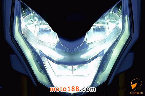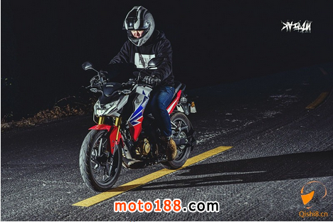 后搖臂造型中規(guī)中矩,是日系四大廠慣用在中小排量車上的那一種。亮點(diǎn)在于它的后剎車,采用了日系大排車御用的日清剎車系統(tǒng)。配置可謂相當(dāng)厚道、直接秒殺國(guó)產(chǎn)其他品牌同級(jí)別的車型。配備140/70R17的后輪,不用多說(shuō)大家也能想象到,CBF190R在后方角度欣賞氣勢(shì)絕對(duì)不輸于Z250、CB300F一類的街車。 在前燈的造型上確實(shí)存在著不小的差異,的確它的造型讓以往Honda的忠實(shí)粉始終不能接受,它的形狀在側(cè)面看和整車確實(shí)非常不協(xié)調(diào),正面看尚可。本田公司稱這樣的外形設(shè)計(jì)是對(duì)光源和整車流線最好的運(yùn)用。在這臺(tái)車上你是找不到一顆燈泡的,因?yàn)槿嚨墓庠慈坎捎肔ED材質(zhì)(包括轉(zhuǎn)向燈、后牌照燈)LED燈相對(duì)于氙燈的好處最大的體會(huì)就是在節(jié)能上,但是霧天穿透力來(lái)講LED燈相比氙燈來(lái)說(shuō)就差了這么一點(diǎn)點(diǎn)。要說(shuō)缺點(diǎn)嘛那就是在遠(yuǎn)光的時(shí)候不夠遠(yuǎn),更像是一個(gè)遠(yuǎn)一點(diǎn)的近光燈,在山路高速騎行時(shí)多多少少會(huì)讓新手們有些不安。 近光燈效果