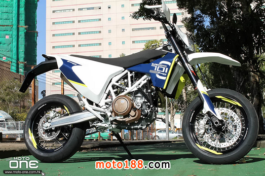 隨著時代進步,大排量與馬力的車子再不會是以往大家心目中的"狂牛",難以馴服、駕馭,其體形與重量再不可同日而喻。車架、引擎、頭尾懸掛系統各種先進設計,組合而成的現代化產物HUSQVARNA 701 SUPERMOTO ,水冷式690c.c.四沖程單汽缸DOHC 4氣門引擎,67hp馬力峰值實屬驕人成就,配合可調式mapping,令騎者更得心應手,配合6前速波箱設定,適合街道上使用。