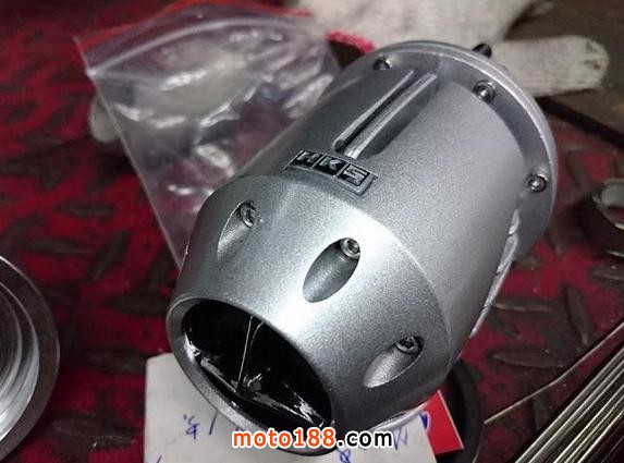 F6B 更換離合器片需要下發(fā)動機才能施工。由于大排摩托車改裝渦輪還是相對陌生的改裝方式,因此這次找來在四輪汽車上改裝渦輪經(jīng)驗相當(dāng)豐富的技師,通過對Gold Wing F6B 車輛構(gòu)造的了解與四輪改裝渦輪的經(jīng)驗,而打造出來。在渦輪改裝前,首先就是要找出渦輪的安裝位置,國外所改裝的渦輪Gold Wing 是將渦輪放在排氣中尾段位置,但因為該車改裝方式,連原本油箱都必須切掉用來跑進氣,因此這個位置不在改裝方案內(nèi)。最后渦輪選擇在前輪后方,原本喇叭的位置處,而喇叭則移到車體內(nèi)。為了搭配渦輪,排氣管也需要自行制作,原廠是左右各三根頭段往后至中段合而為一,再出口一分為二接到尾段。此車是將頭段一出來就合為一根,往前接至渦輪來推動葉片,等于將渦輪安放在頭段位置處。