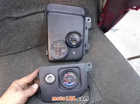 下方是原車主改裝的電壓表,上面是渦輪增壓表和AEM 空燃比計。