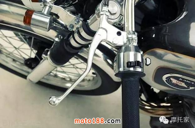 當(dāng)然一些副廠通用改件也使用的恰當(dāng)好處,這款W650還有Tommaselli提供的節(jié)流閥和頭燈座,Daytona提供的電子設(shè)備,Hagon家的減震。