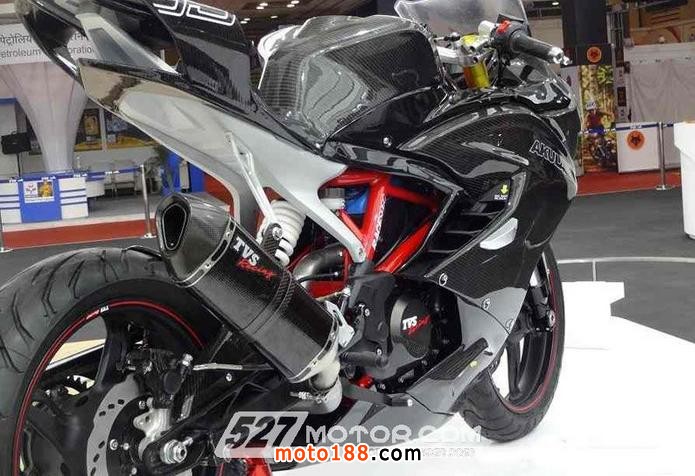 由BMW研發、印度摩托車廠TVS代工的G 310R在去年的EICMA上首次亮相,這款BMW小排量街車受到車友的廣泛關注。而本次TVS推出的這款Akula 310概念跑車搭載的就是G 310R的313c.c.單缸水冷發動機,為符合該車的跑車性能,TVS對該發動機進行了改進,使其有更大的動力輸出。另外,Akula 310采用了與G 310R相同的排氣系統,但更換了新的消音器;其減震系統和剎車系統也與G 310R十分相似。