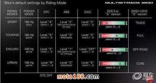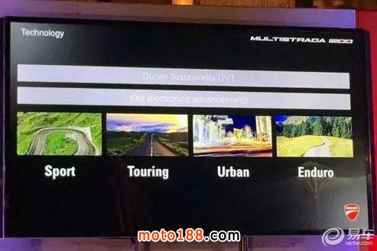 體現在騎行體驗上就是在低速行駛時更加順暢了,同時在高轉速時也可以獲得強勁的動力表現。更強的動力是否會更難駕馭了呢?好在杜卡迪為各類騎士準備了四種駕駛模式(SPORT模式、TOURING旅行模式、URBAN城市模式、ENDURO越野模式)