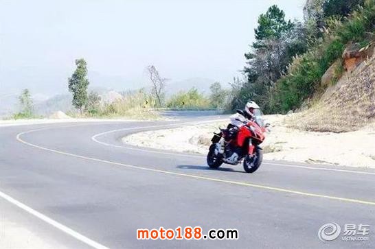 使用URBAN城市模式熟悉了幾十公里后,開始嘗試TOURING旅行模式。這個模式給我最大的感受就是舒適。平滑的動力輸出讓心情隨著美景變得更好,此時我嘗試不用右手去控制油門,全新Multistrada(攬途) 1200 S配備了巡航定速系統,僅需用左手把的加減速按鈕,便可實現對巡航車速的控制。輕點制動后,巡航系統會自動解除。在長途巡航時,舒適度非常重要,全新Multistrada(攬途) 1200 S寬大的車座此時很給力,承托性很好,說白了就是坐久了屁股也不覺得擱。風噪對騎士的侵襲可以用多段可調的風擋化解,同時由于寬大的車頭以及油箱設計,風噪對身體以及腿部的侵襲也大大降低。經過實地體驗,全新Multistrada(攬途) 1200 S的長途適應性很強,可以為騎士提供舒適的長途摩旅體驗。