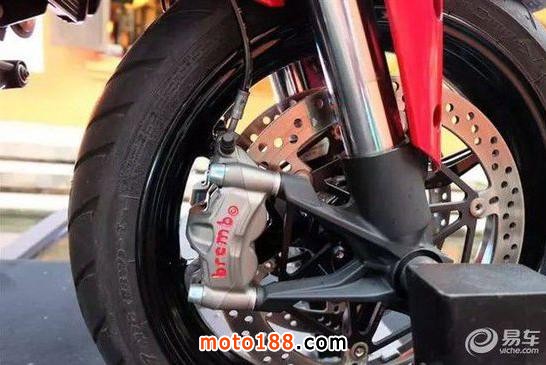 前制動2x330mm半浮剎車碟配Brembo Evo M50 4 pot卡鉗、放射手泵、Cornering ABS
