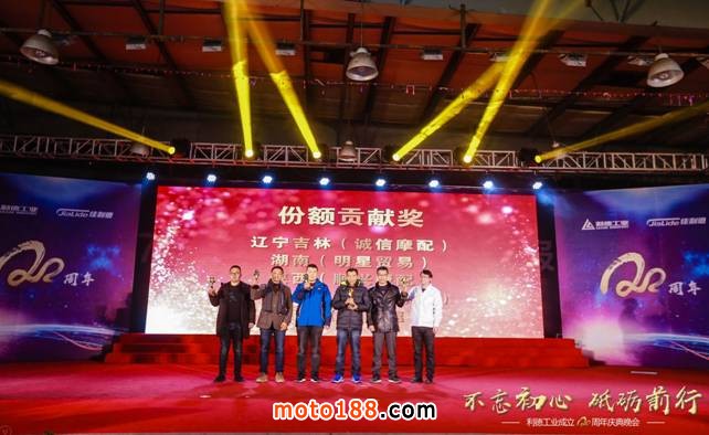 晚會現場利德工業為維修市場經銷商分別頒發了《份額貢獻獎》、《優秀外貿合作商》、《銷售金獎》、《銷售進步獎》和《最佳合作獎》。