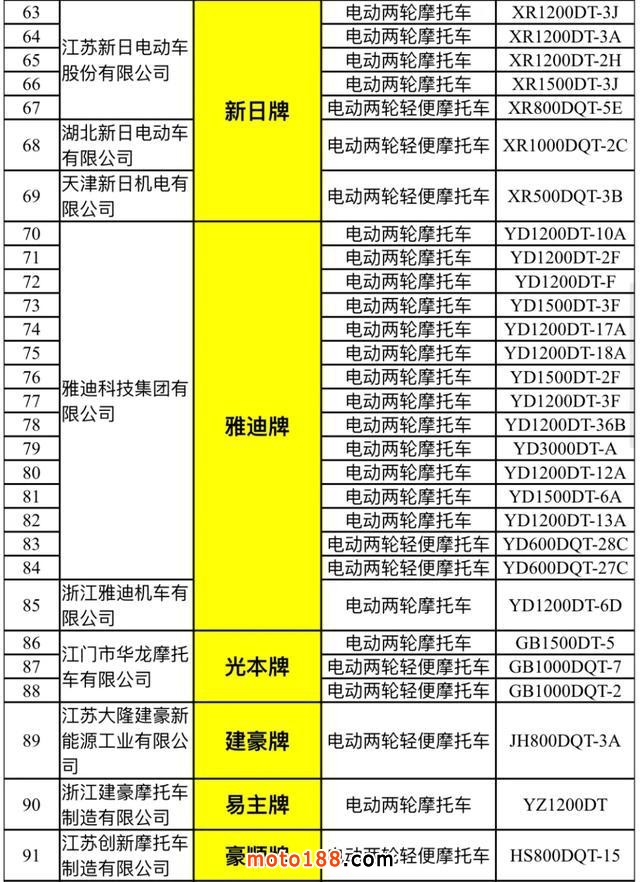 近日,工信部發布了第335批《道路機動車輛生產企業及產品公告》,雅迪、愛瑪、臺鈴、小刀、新日、格林豪泰、賽鴿、歐派、綠源、本鈴、珠峰、鳳凰等78個品牌的218款電摩、電輕摩進入了該目錄。