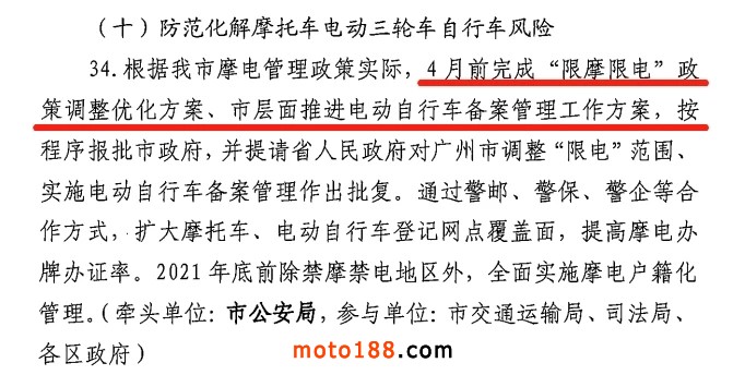 4月前完成“限摩限電”政策調整優化方案,推進電動自行車備案管理工作方案。
