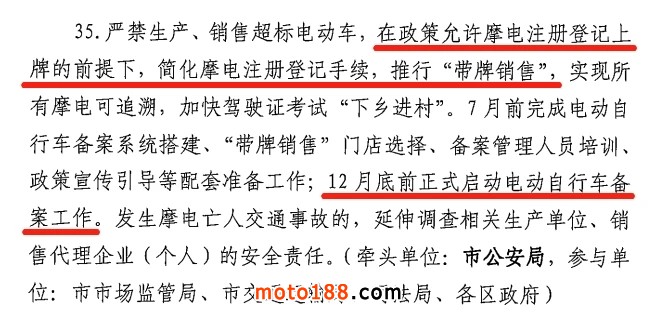 簡化摩電注冊登記手續,推行“帶牌銷售”,12月底前正式啟動電動自行車備案工作。