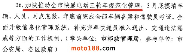 推動快遞電動三輪車規范化管理。