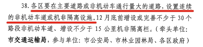 在主要道路或非機動車通行亮大的道路,設置連續的非機動車道或機非隔離設施。