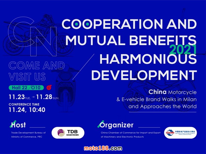 為進(jìn)一步響應(yīng)“十四五”規(guī)劃中打造科技強國、制造強國的號召,助力民族摩電企業(yè)“走出去、走進(jìn)去、融進(jìn)去”,由中華人民共和國商務(wù)部外貿(mào)發(fā)展事務(wù)局主辦、中國機電產(chǎn)品進(jìn)出口商會承辦的“‘合作共贏 和諧發(fā)展’暨中國摩托車電動車品牌走進(jìn)米蘭走進(jìn)世界”的一系列主題推廣活動,將在本屆米蘭展期間正式啟動,旨在進(jìn)一步強化民族摩電企業(yè)在全球范圍內(nèi)的影響力和競爭力,借助EICMA這樣的頂級行業(yè)平臺展現(xiàn)中國優(yōu)秀民族智造業(yè)的風(fēng)采。