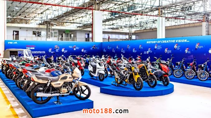 下面的圖片,印度 TVS 的部分產品(資料圖片。圖片來源:TVS Motor)。除了自有品牌的車型之外,該公司同時還為 BMW Motorrad 寶馬摩托代工,去年十月初的時候,該公司為寶馬摩托代工的第十五萬輛 310 系列車型下線,同時也正式宣布將為寶馬代工第二款車型 CE 02 電動踏板。
