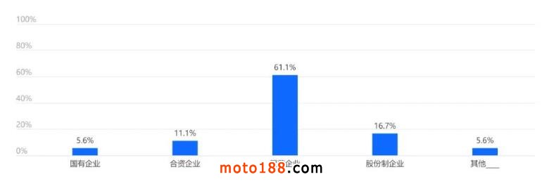 參與此次調查的企業主要為民營企業,占比61.1%,與目前摩托車行業的企業性質結構基本相符。