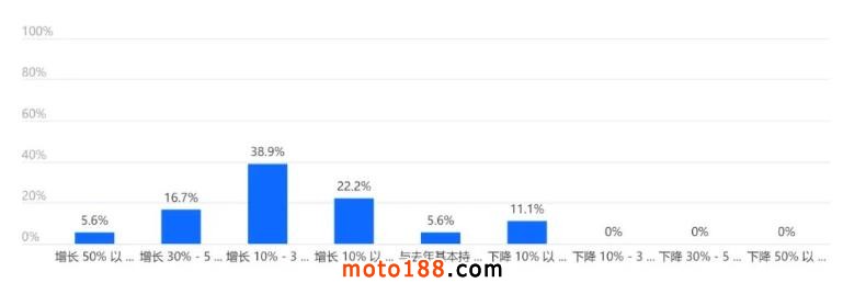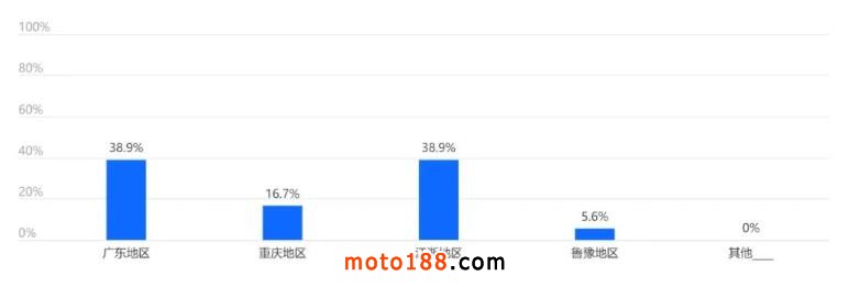 參與此次調查的摩托車企業主要集中在廣東地區和江浙地區,占比均為38.9%,其次為重慶地區(16.7%),與目前摩托車產業集中度基本相符。