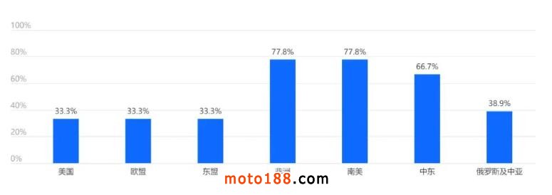 非洲和南美為企業主要出口市場,占比均為77.8%,其次是中東市場,占比66.7%