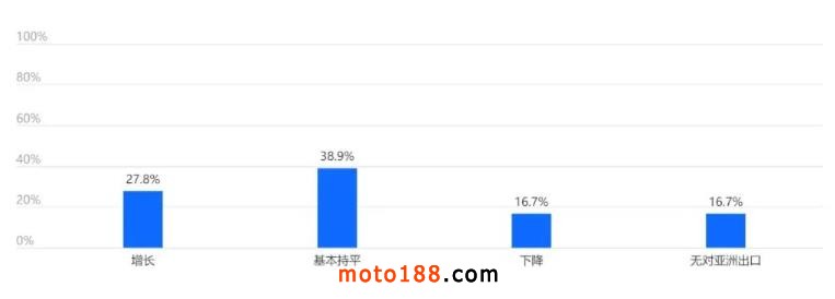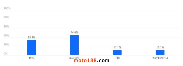 44.4%的企業預計下半年對亞洲出口將基本持平。