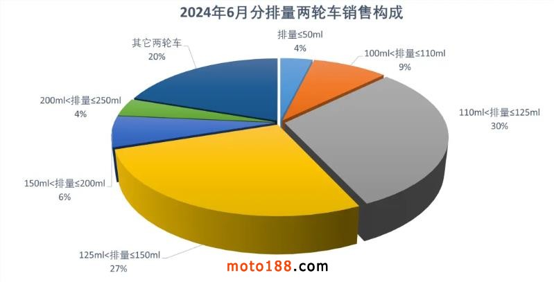 6月,全行業(yè)完成燃油摩托車產(chǎn)銷148.37萬輛和149萬輛,產(chǎn)銷量環(huán)比增長(zhǎng)1.54%和2.89%,同比增長(zhǎng)10.06%和11.33%;據(jù)商會(huì)不完全統(tǒng)計(jì),電動(dòng)摩托車產(chǎn)銷29.76萬輛和31.02萬輛,環(huán)比下降3.13%和6.35%,同比下降12.23%和2.91%。6月共產(chǎn)銷摩托車178.13萬輛和180.02萬輛,環(huán)比增長(zhǎng)0.73%和1.17%,同比增長(zhǎng)5.58%和8.58%。其中二輪車產(chǎn)銷159.04萬輛和160.9萬輛,環(huán)比增長(zhǎng)1.81%和2.48%,同比增長(zhǎng)5.29%和8.58%。大排量休閑娛樂摩托車(排量250cc以上,不含250cc)產(chǎn)銷8.75萬輛和9.01萬輛,環(huán)比增長(zhǎng)9.79%和16.7%,同比增長(zhǎng)86.57%和97.16%。三輪摩托車產(chǎn)銷19.09萬輛和19.12萬輛,產(chǎn)銷量環(huán)比下降7.45%和8.62%,同比增長(zhǎng)8.05%和5.62%。