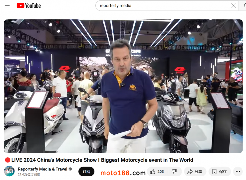 展會使用英語、法語、日語、俄羅斯語、意大利語等多國語言推廣宣傳,重點投放歐洲、南美、東南亞和日本市場;通過超數十位海外達人探館直播、多名專業賽車手站臺,廣告投放、渠道合作、視頻傳播等方式,在全球上百家境外摩托車媒體或財經類媒體、境外知名社交平臺等多種渠道上進行對外推廣,向全世界展現中國摩托車的巨大市場、產能、合作機會,全面提升中國摩博會以及中國摩托車行業國際市場影響力。