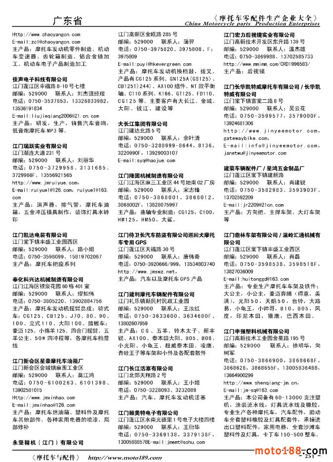 2010版摩托車配件生產企業大全