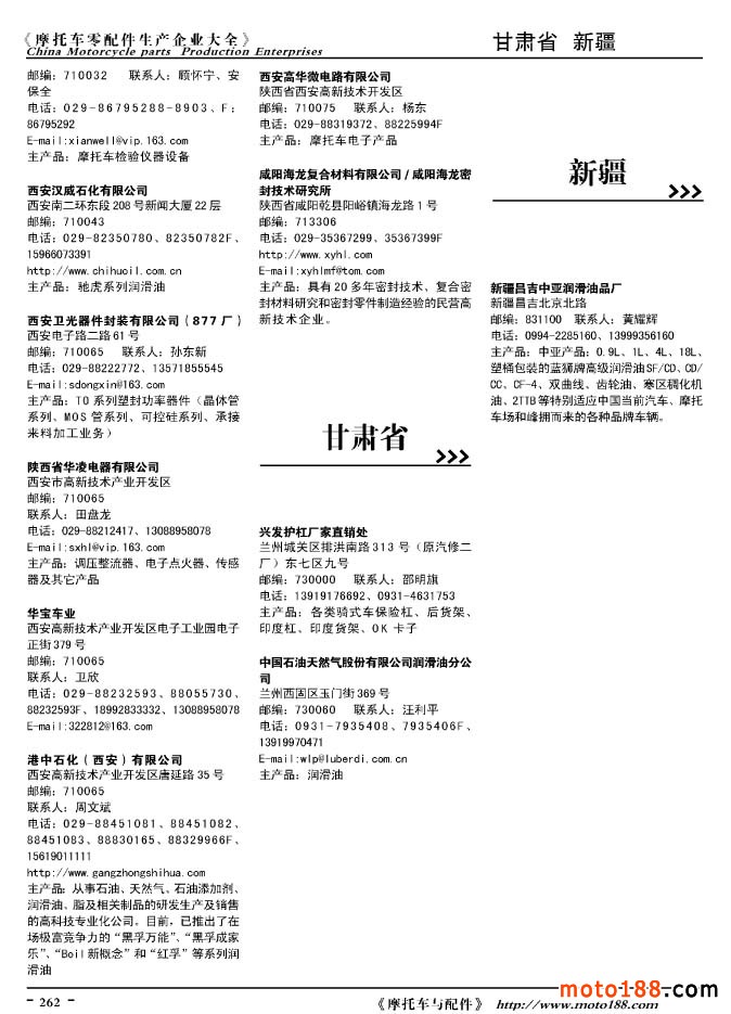 2010版摩托車配件生產企業大全