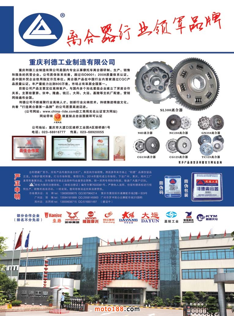 我們雜志在五月份對版面進行了微調,摩托車、電動車、通機等按一定的比例選材編排《摩托車與配件》的外延已經展開,涉及到我們配件行業的相關企業。通過我們對中南地區及華東市場的走訪,我們更加感覺我們調整的及時,緊貼市場。目前摩托車行業在華東地區變化非常大,有昨日黃花之感覺,一些我們以前了解的大戶,曾經門庭若市,現在卻門庭冷落車馬稀,有的不堪門面費用,已轉到倉儲用大篷車送貨銷售。相比而言,中南地區市場變化不算大,在經營數量上還略有增加。摩托車整車市場變化超過了我們配件市場,除了摩托車整車十大品牌還依然屹立,一些小品牌在市場已經很少能看見。這些撤走的小品牌車的門店,變成了電動車和三輪車的門面了,有的甚至是電動四輪車。一些企業稱這些車是新能源汽車,能源肯定是新的,但是作為汽車也稍微寒磣了一點吧。盡管如此,有的地區已經呈現出將要成市的勢頭,但愿這類車在二三線城市不要遭受摩托車的命運。