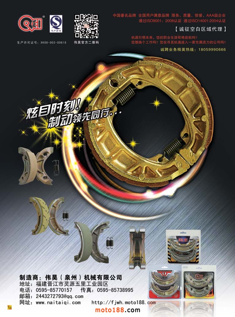 我們雜志在五月份對版面進行了微調,摩托車、電動車、通機等按一定的比例選材編排《摩托車與配件》的外延已經展開,涉及到我們配件行業的相關企業。通過我們對中南地區及華東市場的走訪,我們更加感覺我們調整的及時,緊貼市場。目前摩托車行業在華東地區變化非常大,有昨日黃花之感覺,一些我們以前了解的大戶,曾經門庭若市,現在卻門庭冷落車馬稀,有的不堪門面費用,已轉到倉儲用大篷車送貨銷售。相比而言,中南地區市場變化不算大,在經營數量上還略有增加。摩托車整車市場變化超過了我們配件市場,除了摩托車整車十大品牌還依然屹立,一些小品牌在市場已經很少能看見。這些撤走的小品牌車的門店,變成了電動車和三輪車的門面了,有的甚至是電動四輪車。一些企業稱這些車是新能源汽車,能源肯定是新的,但是作為汽車也稍微寒磣了一點吧。盡管如此,有的地區已經呈現出將要成市的勢頭,但愿這類車在二三線城市不要遭受摩托車的命運。