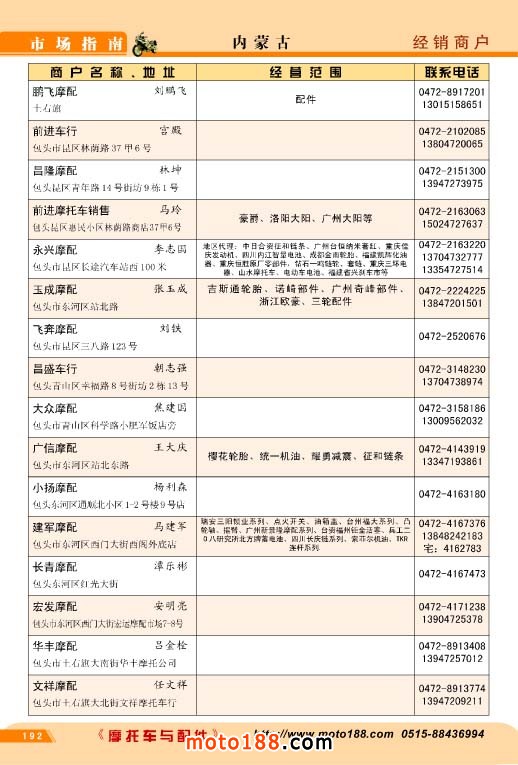 目前本系列書籍已成功出版了三個系列,由于我們的真心付出,市場的反響也越來越好,本來我們計劃在全國摩配會前截稿,由于廣告突破了我們的計劃,我們提前一個月出版,本書 的信息量也比以往大,廣告量如不控制將會爆發(fā)性增長,書太厚不方便大家的使用,因而我們 毅然提前停止了廣告的征集。
