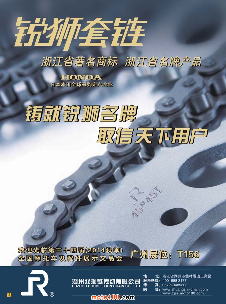 行業大型展會——第三十四屆秋季廣州全摩會會展期間,由于雜志廣告版面較多,原定出版的配件套缸專題和三輪車行業的相關信息專題移至下期出刊。