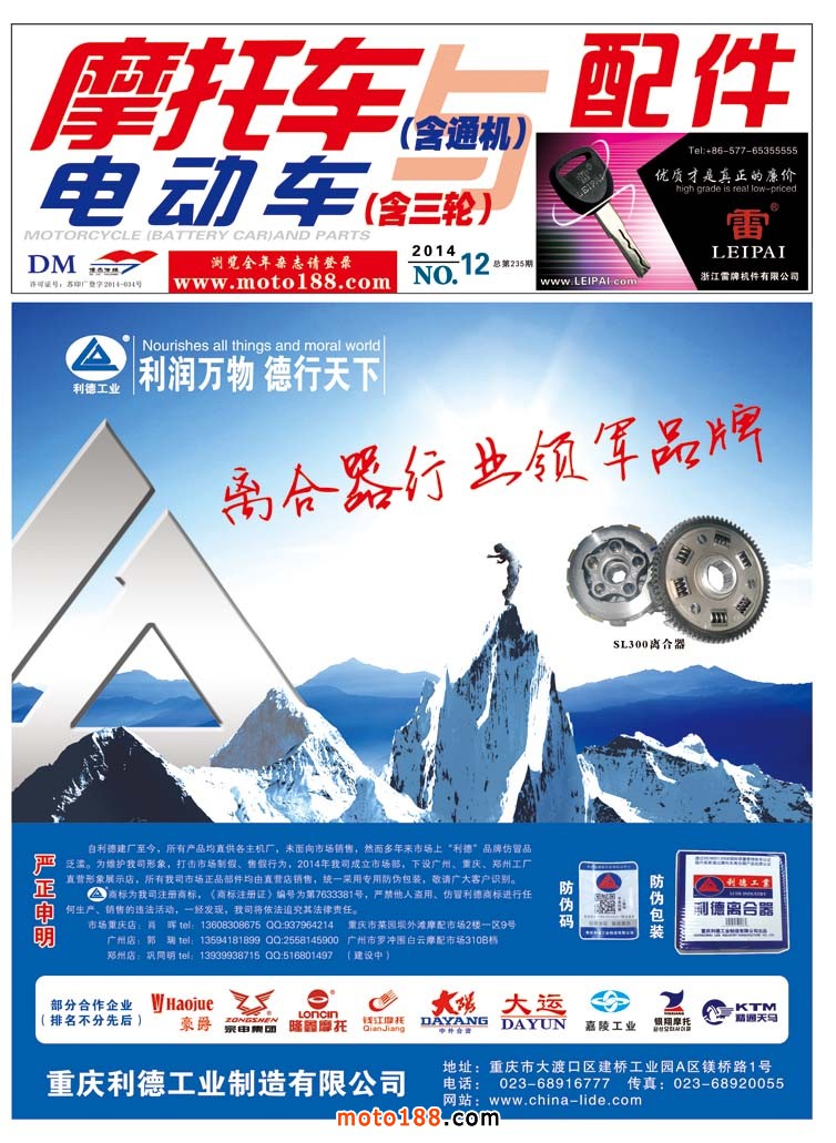天氣在漸漸變冷,時(shí)令將進(jìn)入冬季,對(duì)于南方市場來說,將迎來元旦、春節(jié)的節(jié)日市場,并達(dá)到新年銷售的高潮;對(duì)于北方市場來說,冬季則將步入淡季。對(duì)我們雜志社來說,冬季也將了收官階段,開始規(guī)劃新一年的工作,凡事預(yù)則立,不預(yù)則廢。為了明年更好的開展工作,我們雜志社規(guī)劃在2015年的工作分三條線開展:一是為了2015年的春季重慶全國摩托車及配件展示交易會(huì)的召開編寫新版的《西南(川渝)市場指南》,明年上半年的配件行業(yè)的工作重點(diǎn)放置在西南地區(qū);春季重慶全摩會(huì)也涉及新能源行業(yè),我們雜志也將為這一專題做好相應(yīng)的工作。二是在2014年我們雜志社參與了很多的在電動(dòng)車、三輪車行業(yè)的會(huì)議,頻率大概是每月參加4次會(huì)議,同時(shí)增加了重點(diǎn)市場的投放,但是工作進(jìn)展卻不盡人意,在明年的工作中我們將會(huì)增加這一塊的投入,加大工作力度;同時(shí)把這個(gè)行業(yè)大數(shù)據(jù)進(jìn)行整理匯總,初步統(tǒng)計(jì)有5~7萬家的資料需要核對(duì),由于工作量巨大,此項(xiàng)工作目前已經(jīng)開始進(jìn)行。三是我們今年新出刊的《新能源車》雜志,明年將以月刊的形式出刊,同時(shí)在全國有新能源汽車的市場做到全覆蓋,除了做到最好之外,把同行甩得更遠(yuǎn)。