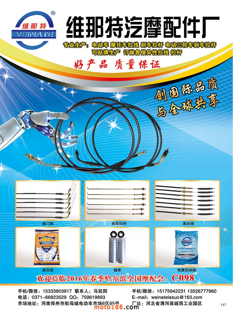 値此全摩會的召開,我們將去冬今春的勞動成果展示給大家:《中國摩托車配件市場指南.北方版》簡稱《北方市場指南》,這也是第二次升級版的終結版,本書將在哈爾濱全國摩配會議面向全行業正式首發,有覆蓋不到的地區,可在我們www.wfenlaw.cn網站上看得到,可以查閱資料也可以下載保存脫機瀏覽。