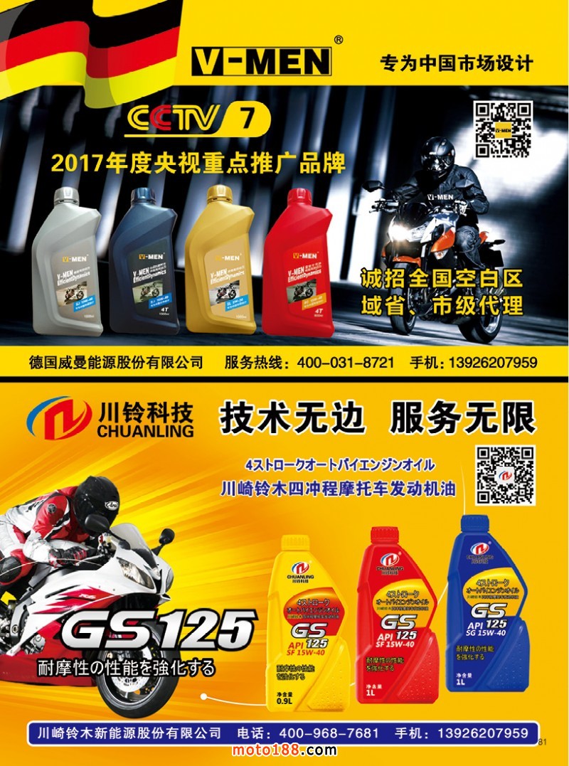 2017.6月《摩托車/電動車與配件》雜志,歡迎大家閱讀日期:2017-06-02 點擊:1294 查看原圖 全部展開![]() ![]() ![]() 內81 德國威曼能源股份有限公司